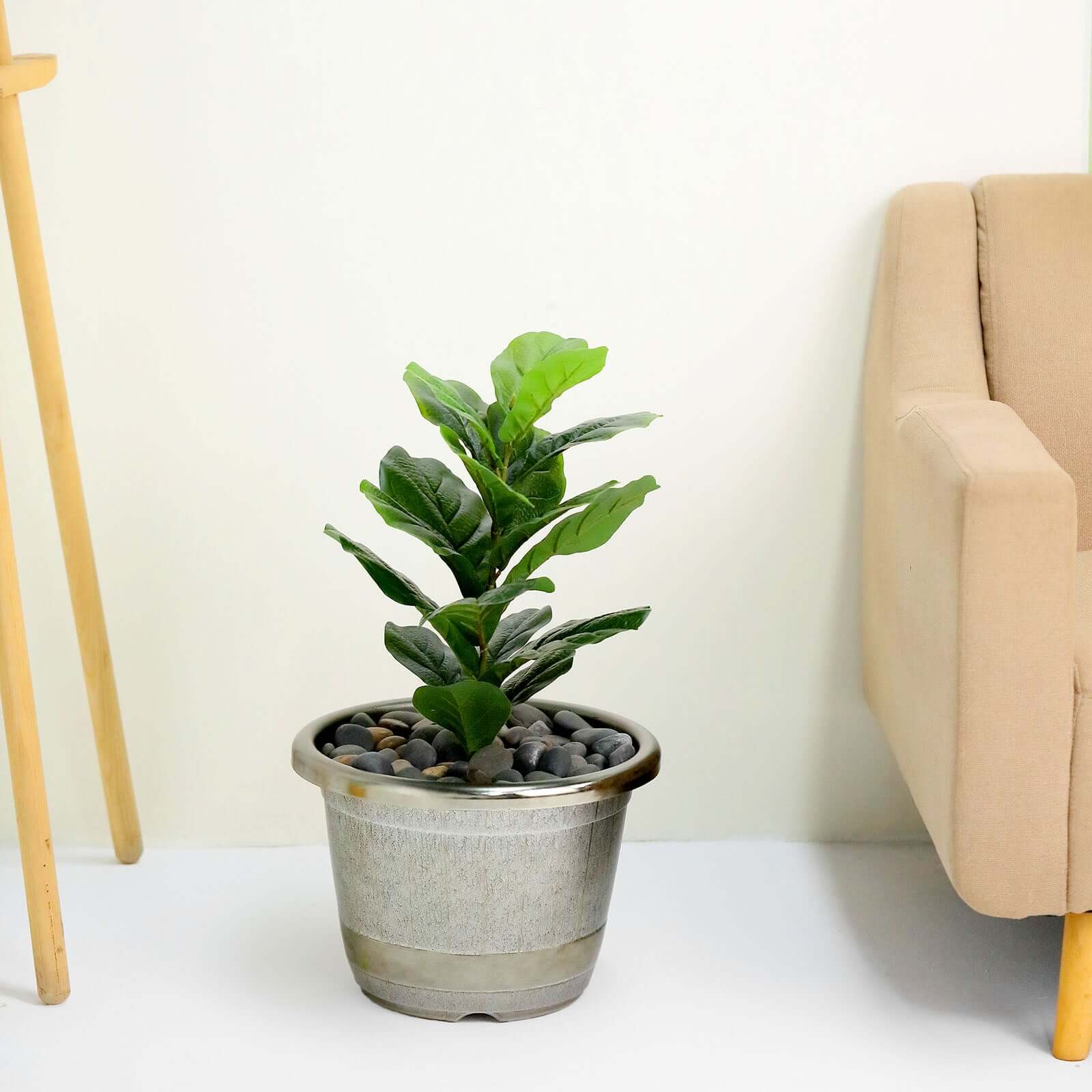 14" Silver Chrome Finished Rim Large Barrel Planter Pot, Indoor Outdoor Decorative Flower Pot