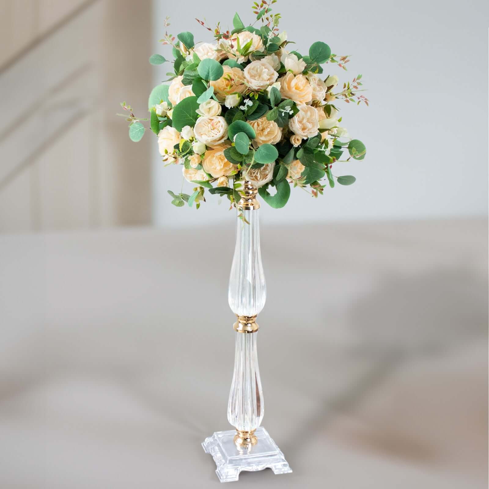Acrylic Crystal Pillar Candle Stand Gold/Clear - Table Centerpiece and Wedding Flower Bowl Pedestal 24"