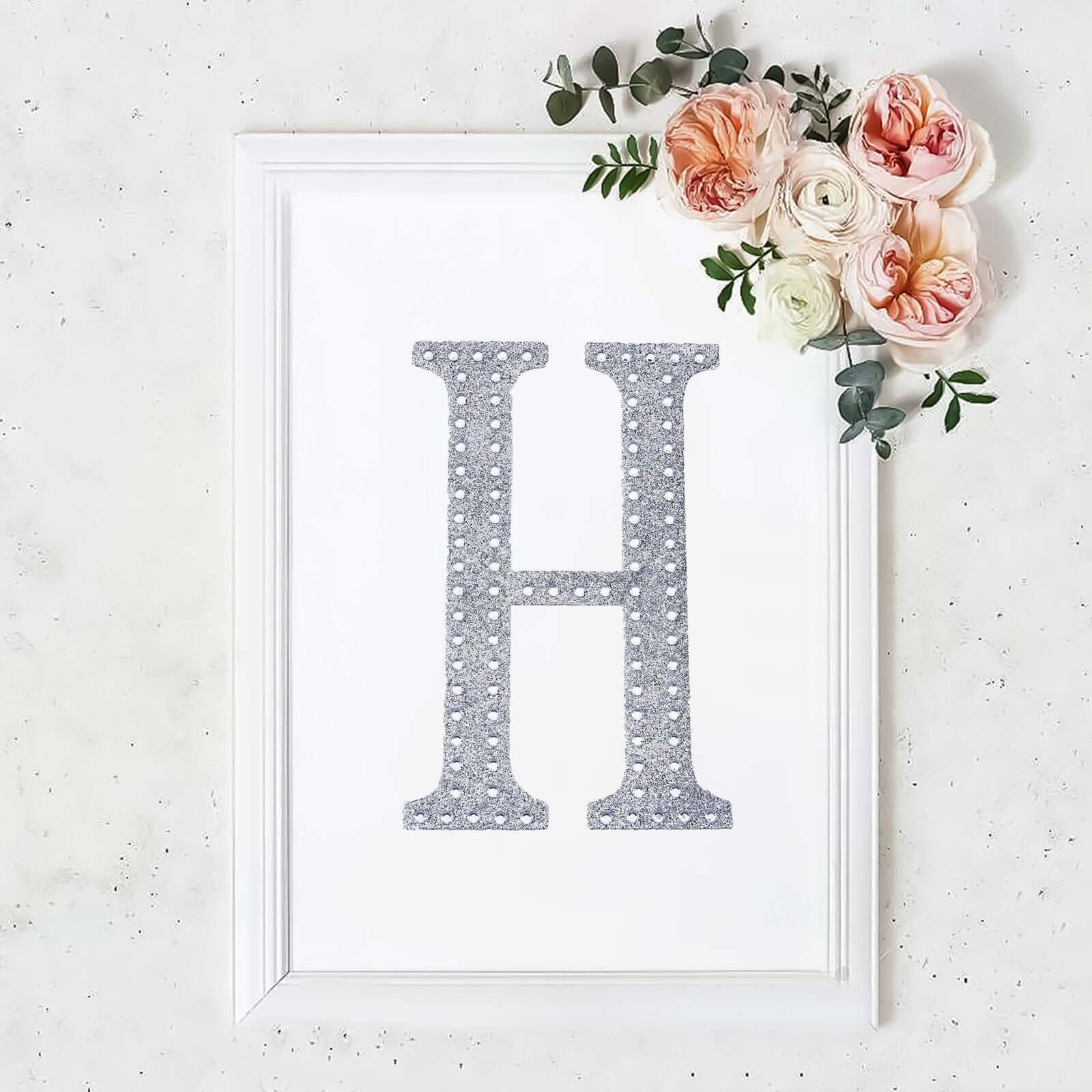 Decorative Rhinestone Alphabet "H" Letter Stickers, Glitter Adhesive Craft Letters Silver DIY Sparkle Embellishments 8"