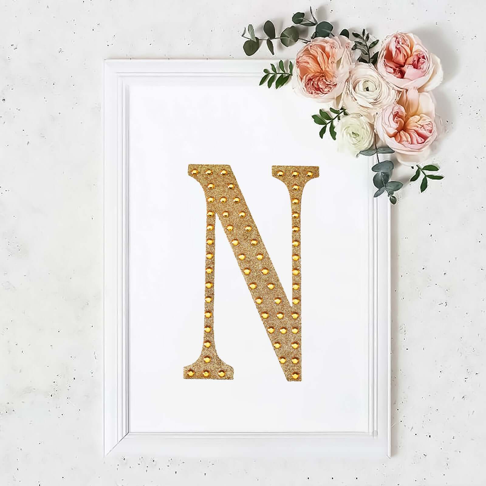 Decorative Rhinestone Alphabet "N" Letter Stickers, Glitter Adhesive Craft Letters Gold DIY Sparkle Embellishments 8"