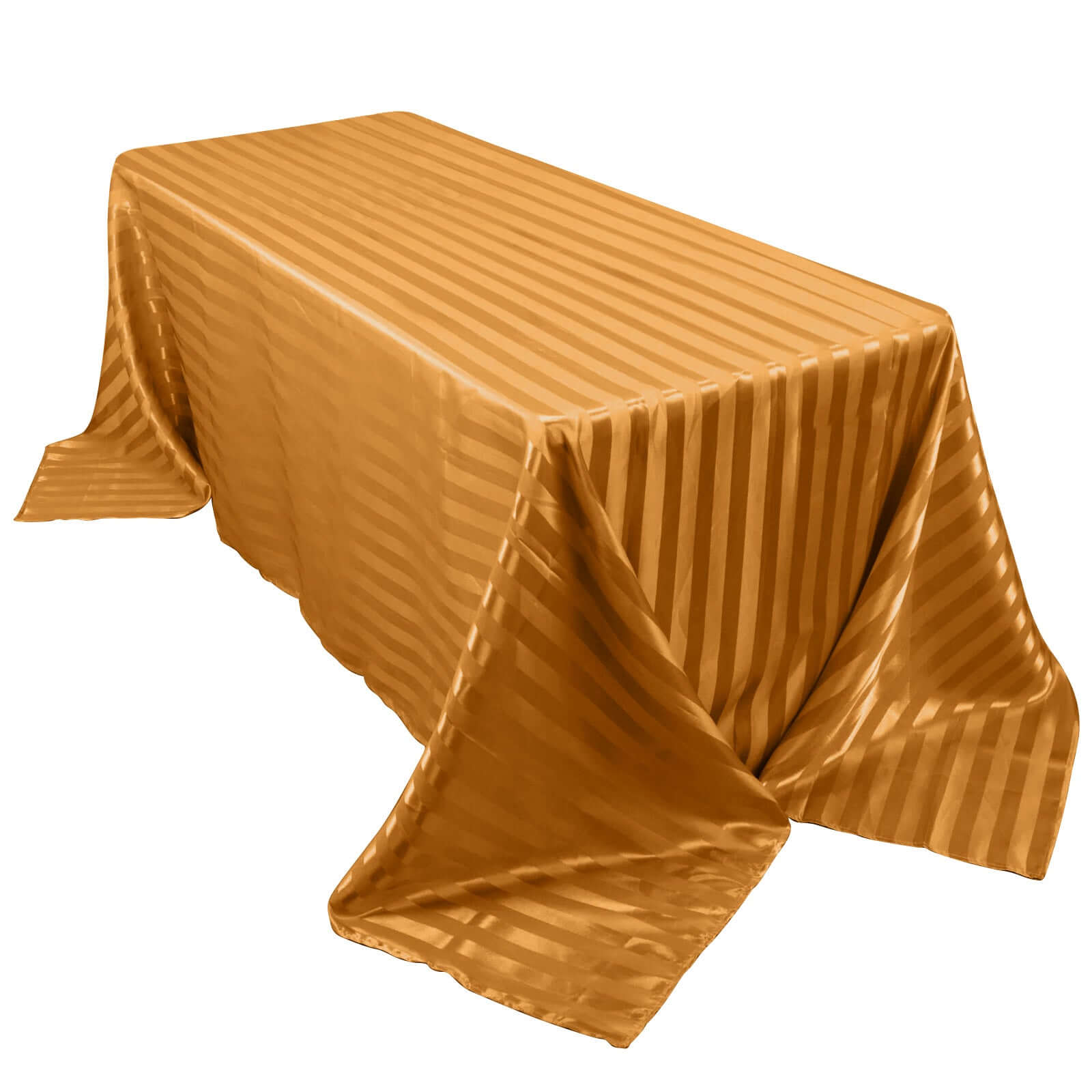 Satin Striped 90"x132" Rectangular Tablecloth Gold - Seamless Silky Smooth Table Cover