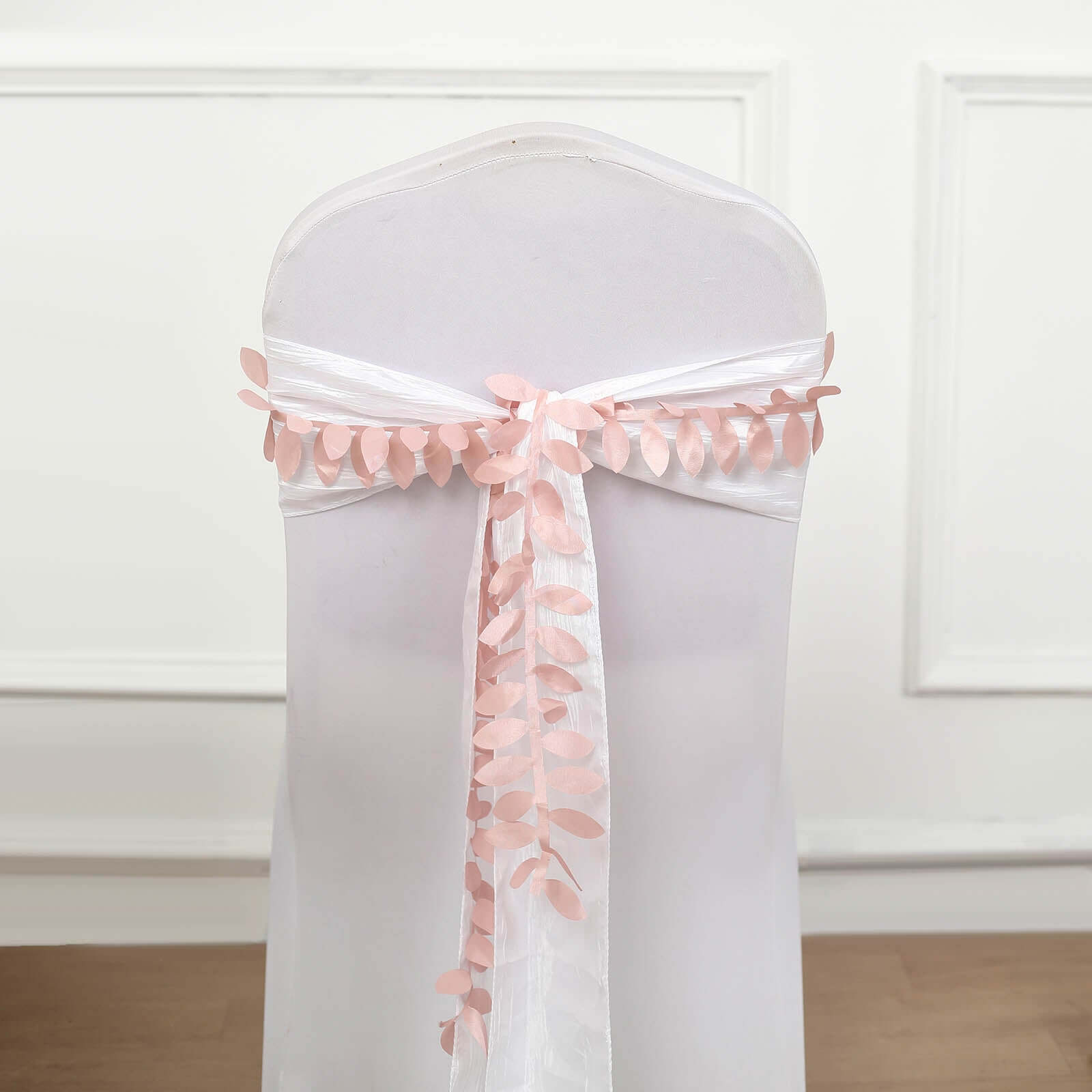 Taffeta Ribbon Sash with 4" Leaf Petal Design Dusty Rose 50ft - Sophisticated Artificial Fabric Garland